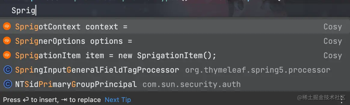 正如官网介绍的一样,它不仅可以联想到对应的类,更能给出更多的代码提示,比如这里。