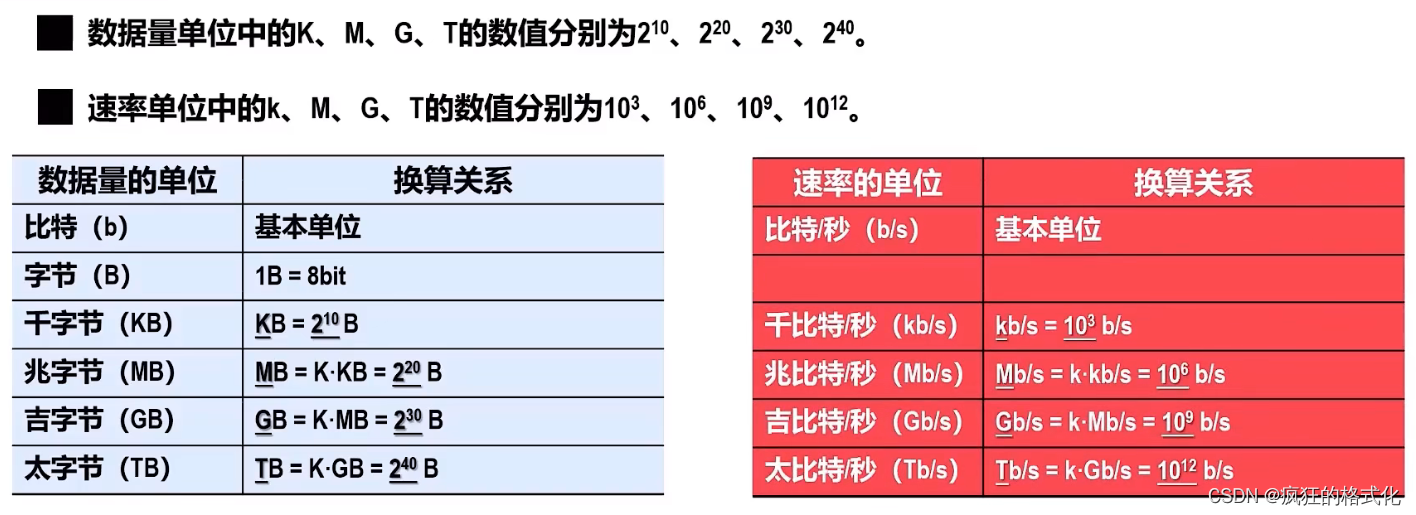 连接在计算机网络上的主机在数字信道上传送比特的速率也称为比特率或数据率,其最小单位为 bps ,常用单位还有 kbps 、 Mbps 、 Gbps 、 Tbps 等,其中 k 、 M 、 G 、T 的数值分别为()。A. 10^3,10^6,10^9,10^12B. 2^10,2^20,2^30,2^40C. 2^3,2^6,2^9,2^12D. 10^10,10^20,10^30,10^40【答案】 A【解析】![]()