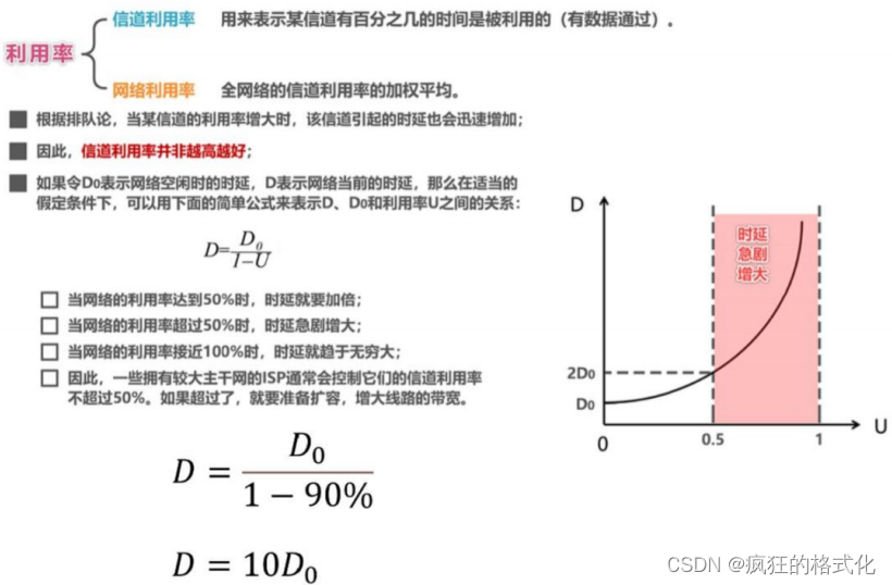 假定网络的利用率达到了 90% ,则当前的网络时延是网络空闲时的时延的()。A. 10 倍B. 100 倍C. 50%D. 25%【答案】 A【解析】根据排队论可知, 当某链路的利用率增大时, 该链路引起的时延就会迅速增加。令 D0 表示网络空闲时的时延,D 表示网络当前的时延,那么在理想的假定条件下,可用下式来表示 D、D0 和网络利用率 U 之间的关系:![]()