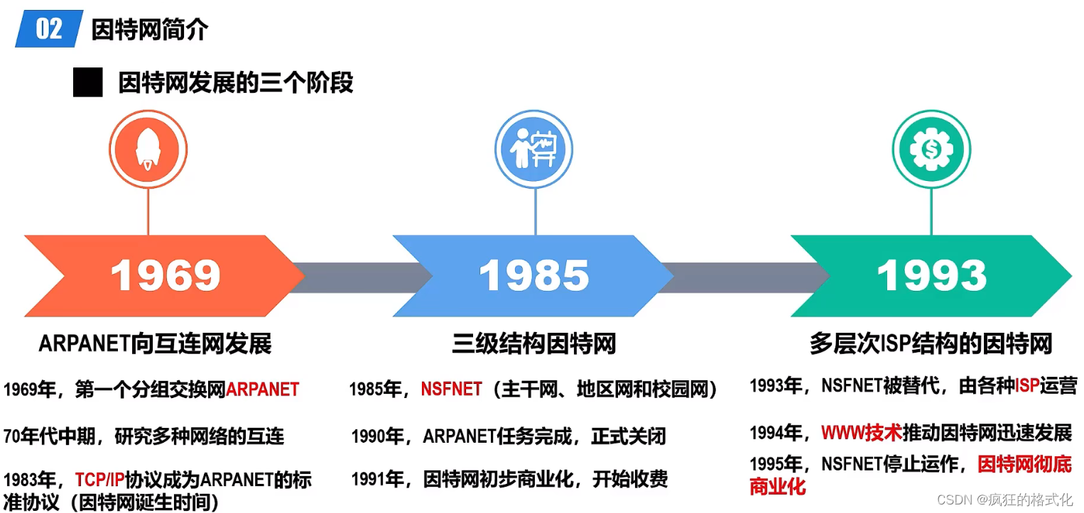 因特网的前身是 1969 年创建的第一个分组交换网()。A. internetB. InternetC. NSFNETD. ARPANET【答案】 D【解析】![]()