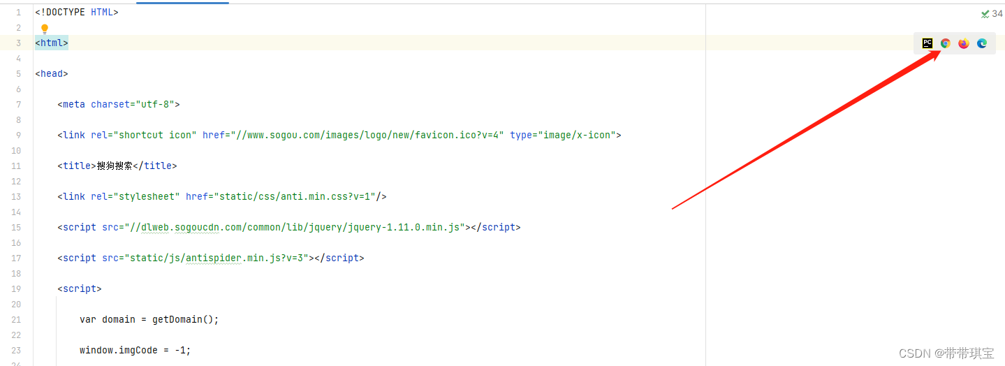 在这里我使用该函数创建了名为 kw.html 的 html 文件(Python 本身是支持这种类型的文件的),再把我们上面返回响应结果的文本写入这个文件,可得到内容如下的一个 html 文件