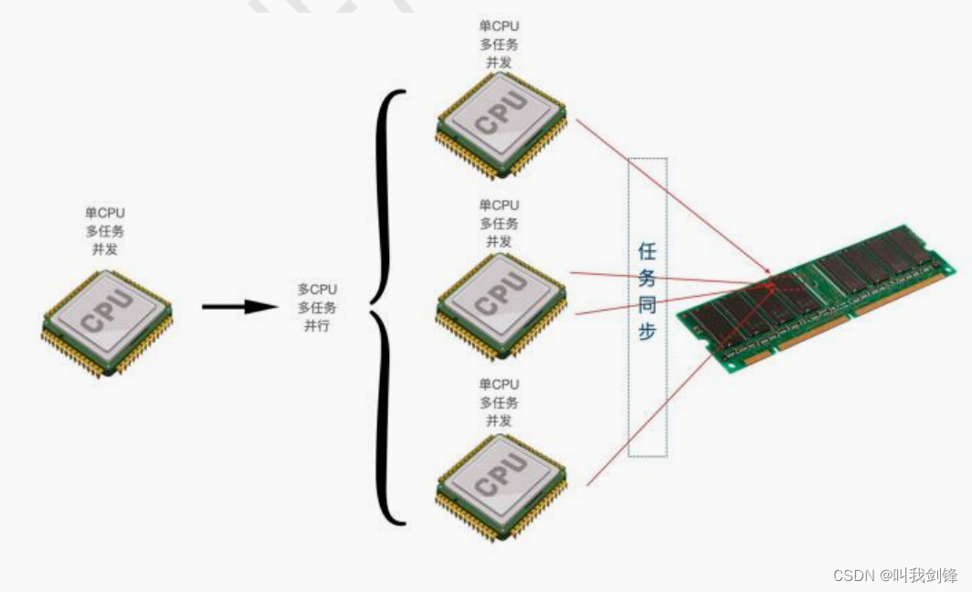 大家排队在一个咖啡机上接咖啡,交替执行,是并发;两台咖啡机上面接咖啡,是并行。 从严格意义上来说,并行的多任务是真的同时执行,而对于并发来说,这个过程只是交替的,一会执行 任务 A,一会执行任务 B,系统会不停地在两者之间切换。