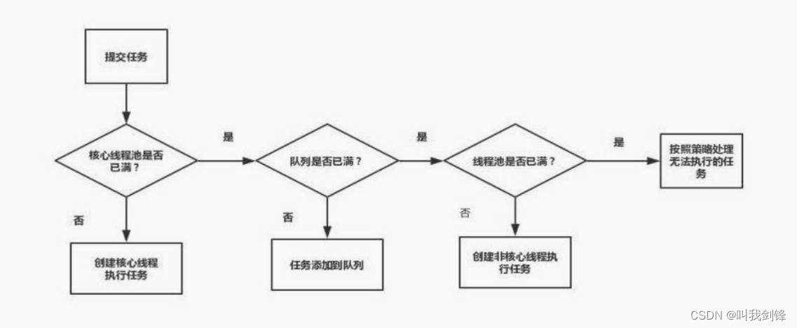 - 如果当前的线程数达到了 maximumPoolSize,还有新的任务过来的话,直接采用拒绝策略处理。