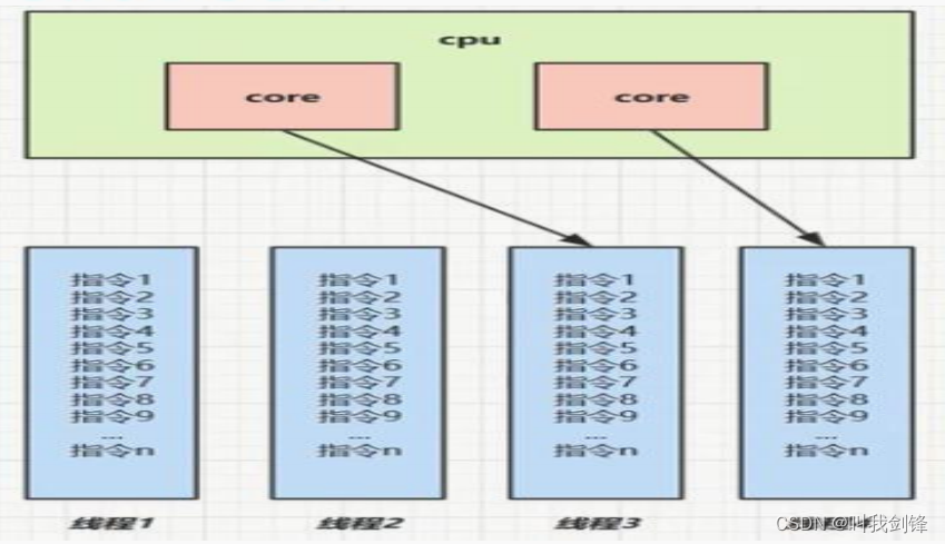 多核 cpu 下,每个核(core)都可以调度运行线程,这时候线程可以是并行的。