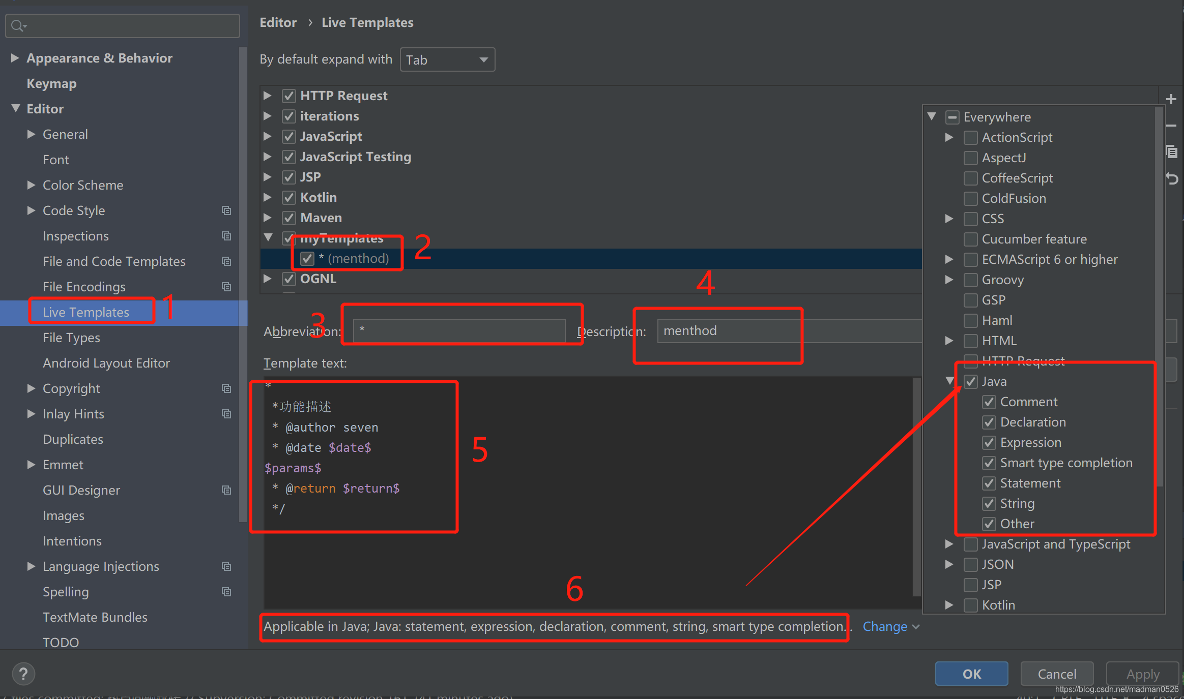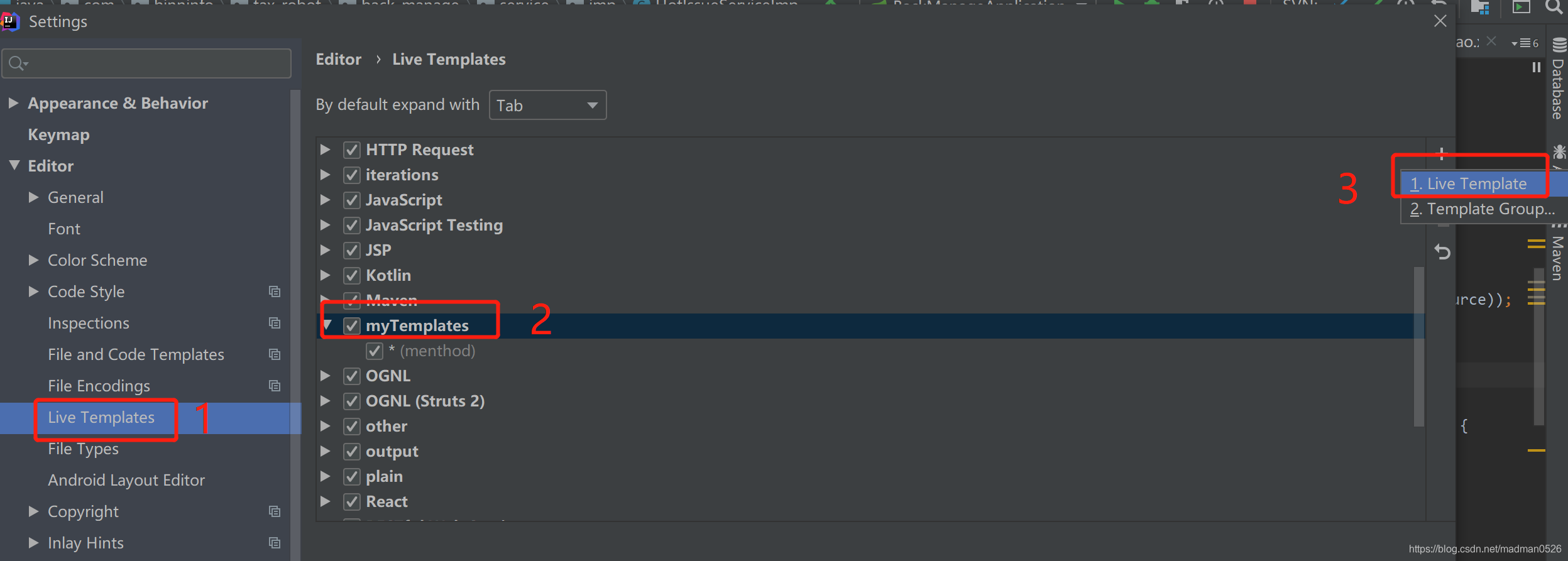 - 选中刚刚创建的模版组,新建模版,自己起名字(method)
