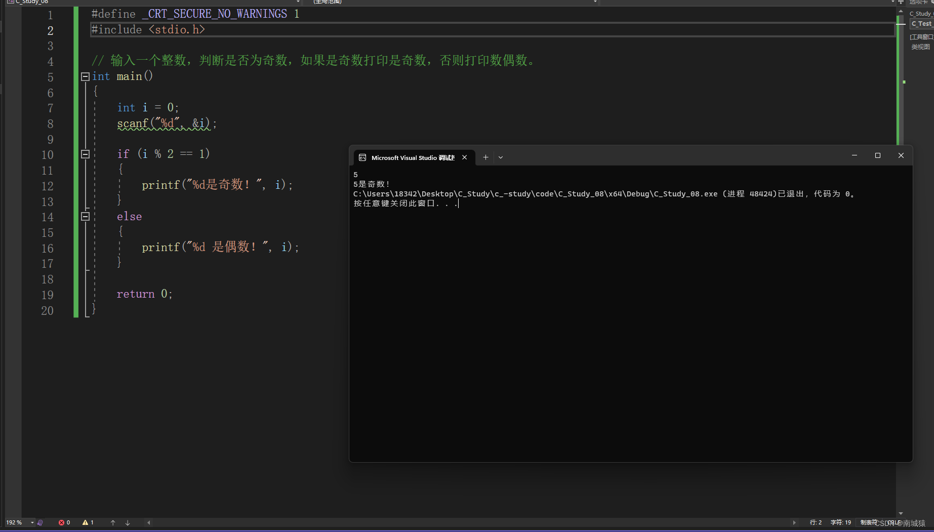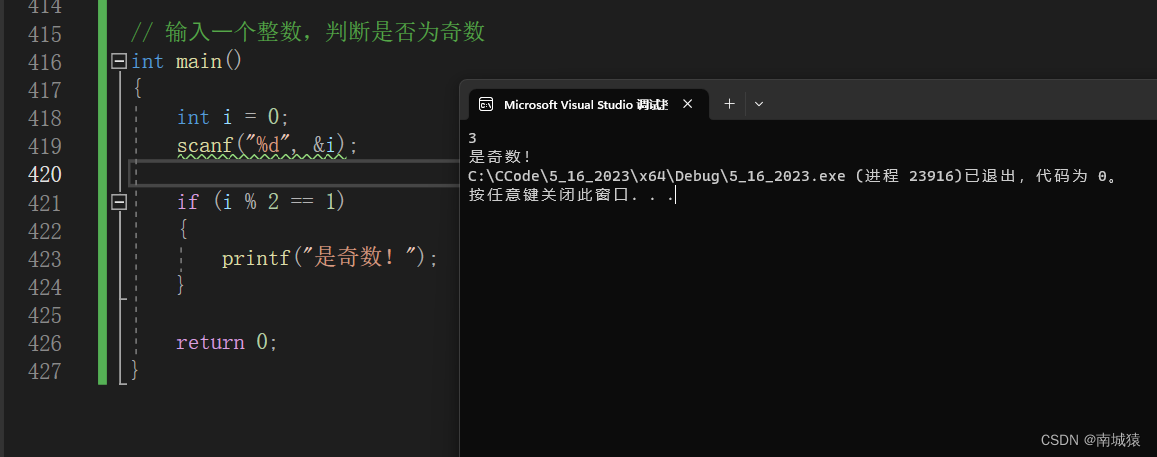 // 输入一个整数,判断是否为奇数,如果是奇数打印是奇数,否则打印数偶数。