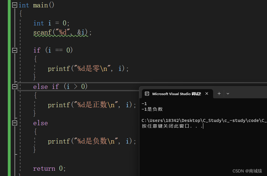 例子:要求输入一个整数,判断输入的整数是0,还是正数或者负数。