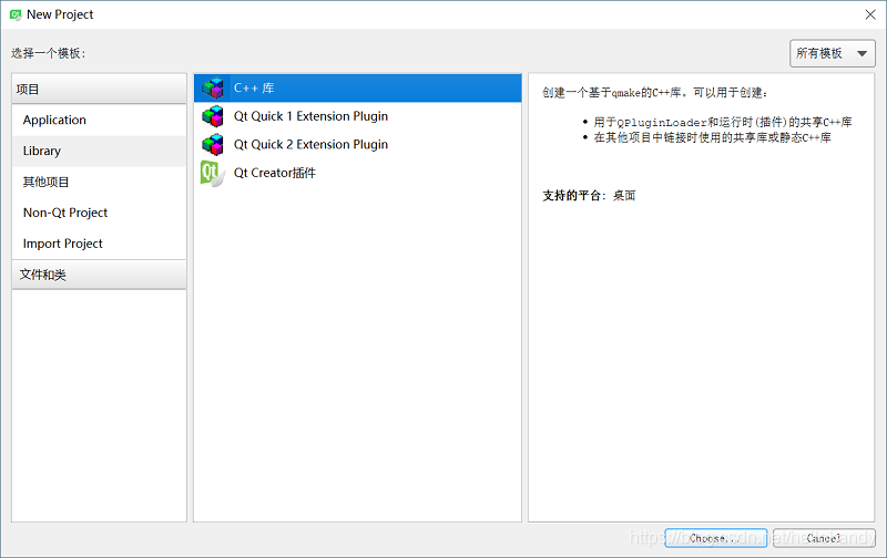 1.1、创建项目的时候选择,Library > C++库,然后点击“choose”按钮
