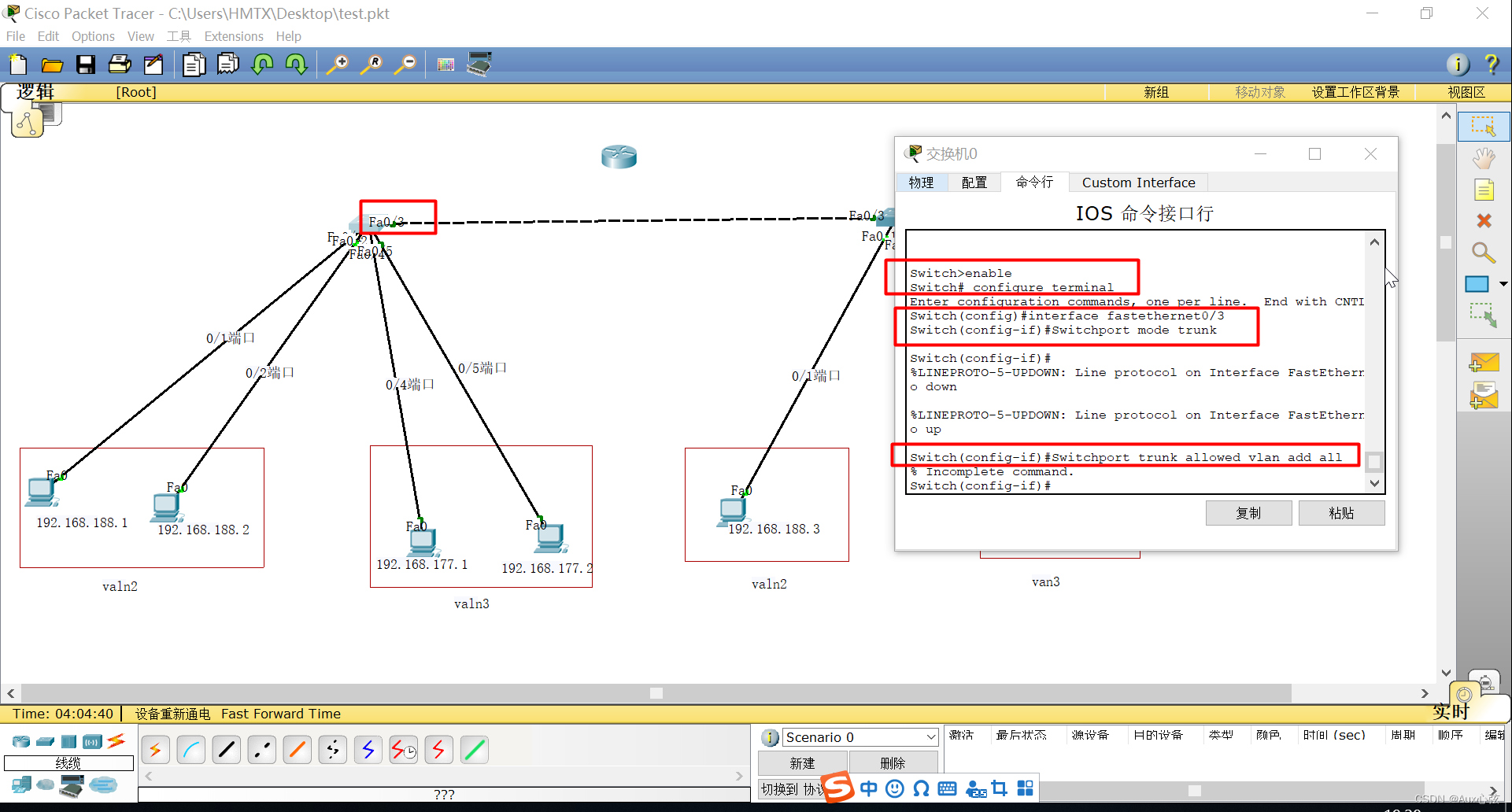 (3)配置图"左边valn3"的trunk步骤(每一个valn之外通信,注意 vlan 编号是要相等的)