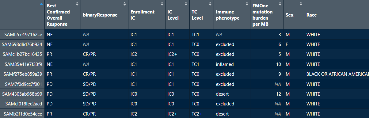 如前文所讲,这个R包有一些珍贵的数据,是一个当前十分流行的免疫反应队列数据包,包含了一些免疫治疗相关的数据。