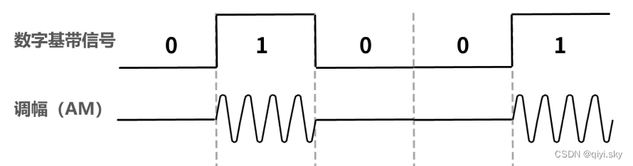 调制后产生的信号是模拟信号,可以在模拟信号中传输,例如Wifi使用补码键控,直接序列扩频,正交频分复用等调制方法。