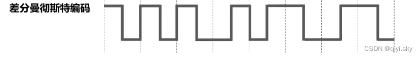 而用码元开始处电平是否发生变化,来表示数据,如图所示: