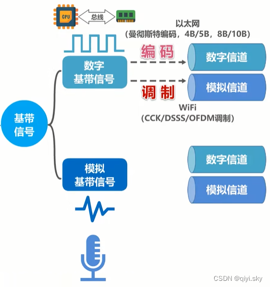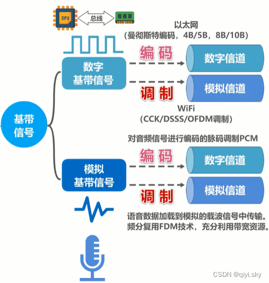 计算机网络——物理层-编码与调制(数字基带信号、模拟基带信号、码元、常用编码、基本调制方法、混合调制)