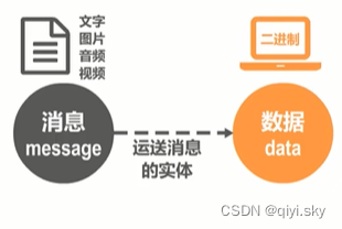 在计算机网络中,计算机需要处理和传输用户的文字、图片、音频和视频,他们可以统称为消息。