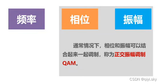通常情况下,相位和振幅可以结合起来一起调制,称为正交振幅调制QAM。