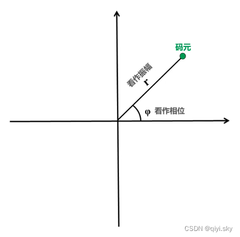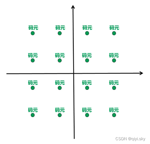 我们可在星座图中,画出该调制方法所产生的码元,该点就表示其中的一个码元: