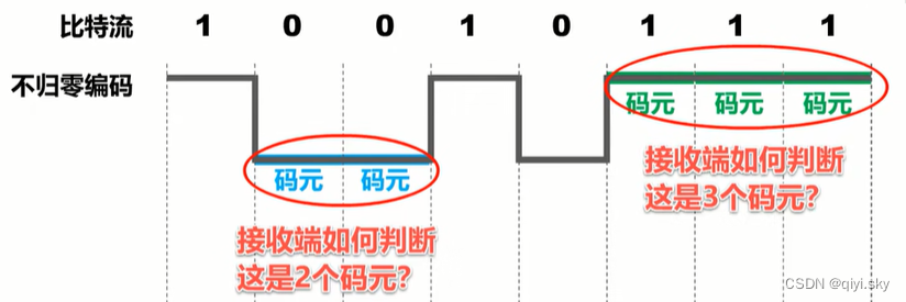 那么就有一个问题了:接收端如何判断出是两个码元还是三个码元。