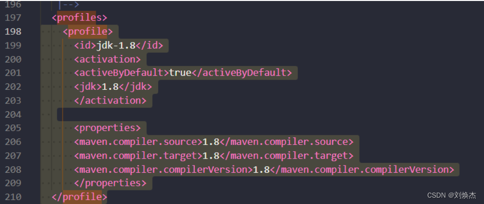 在settings.xml配置文件中找到 profile节点(大约在212行左右)