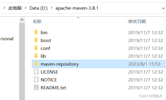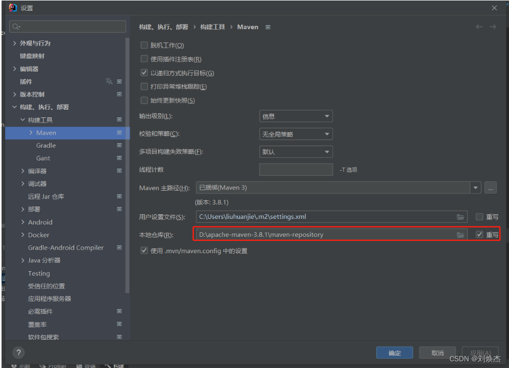 我的路径 D:\apache-maven-3.8.1\maven-repository