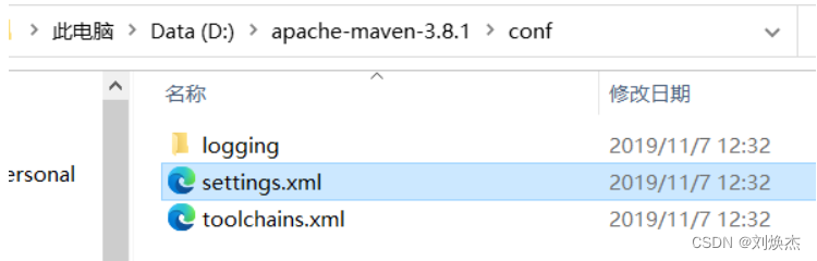在maven安装目录下找到 conf文件夹,进入后编辑 【settings.xml】文件,进行本地仓库配置