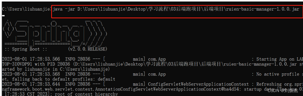 例如:java -jar D:\Users\liuhuanjie\Desktop\学习流程\03后端跑项目\后端项目