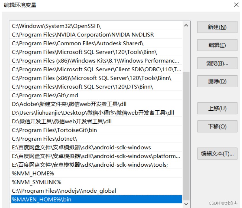 单击【Path】,添加变量值【%MAVEN_HOME%\bin】