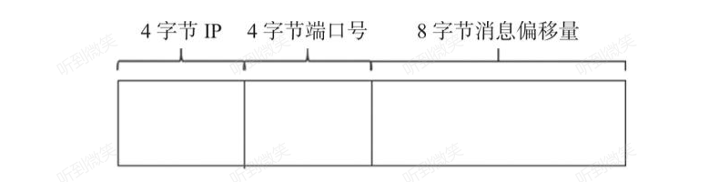 正如关系型数据库会为每条数据引入一个ID字段,基于文件编程也会为每条消息引入一个身份标志:消息物理偏移量,即消息存储在文件的起始位置。