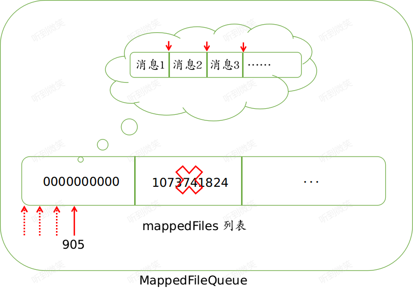,该目录下会存在多个内存映射文件MappedFile。MappedFileQueue结构如下:
