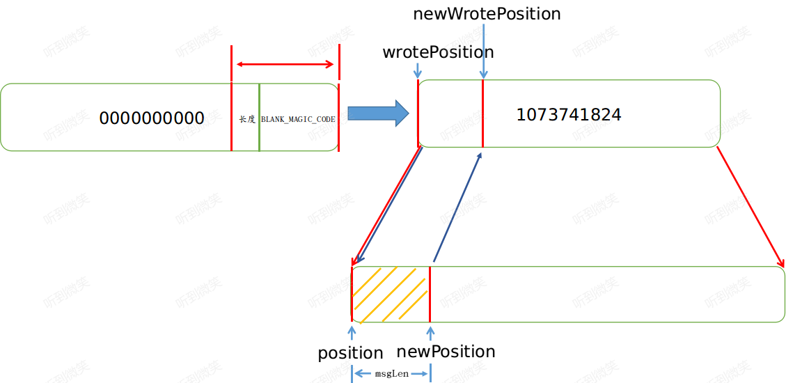 当判定这个文件不足以容纳整个消息的时候,其将消息体长度设置为这个文件剩余的最大空间长度,将 MAGICCODE