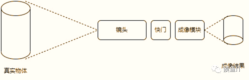首先从镜头接收景物的光线,透过透镜、感光元件将光信号转为电信号,再经ISP图像处理,最终显示在屏幕上。