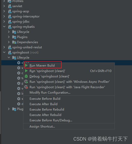 在clean右键 Run Maven Build时会报全部的子项目中找不到starter-web、starter-test版本号;在父pom中去掉这两个依赖即可!