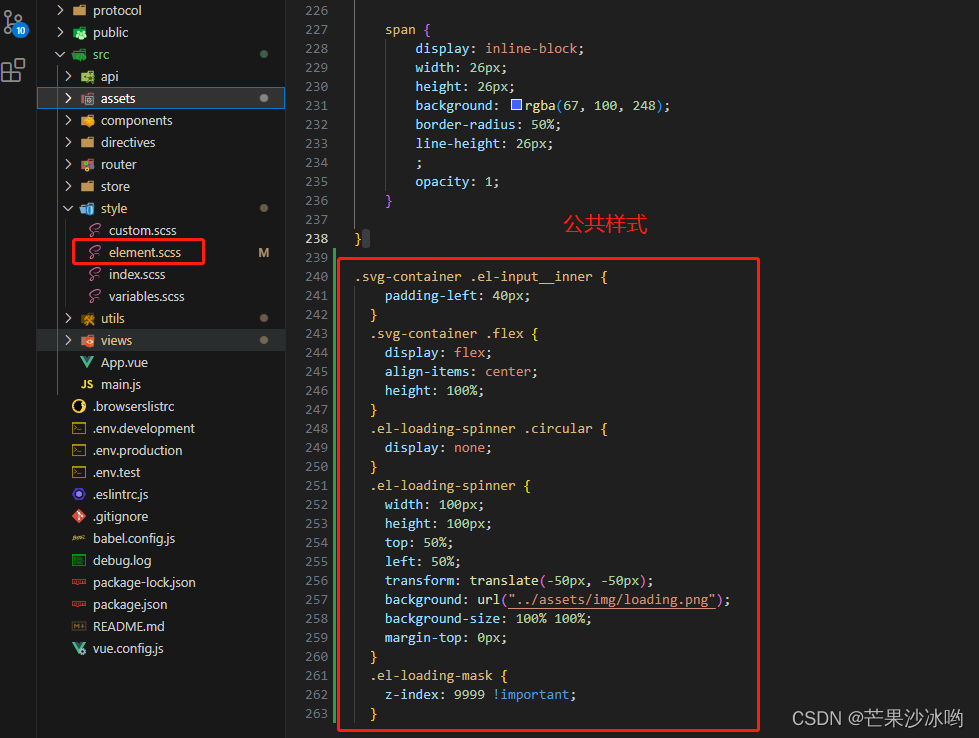 方法二:将自定义样式写在公共css中,在需要的文件里面进行调用
