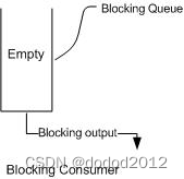 如上图所示:当队列中没有数据的情况下,消费者端的所有线程都会被自动阻塞(挂起),直到有数据放入队列。