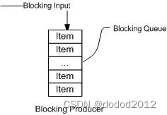 如上图所示:当队列中填满数据的情况下,生产者端的所有线程都会被自动阻塞(挂起),直到队列中有空的位置,线程被自动唤醒。
