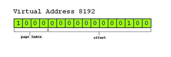 24576+4=24580)。同样的,若我们对虚拟地址1026进行读取,1026的二进制码为0000010000000010,page index=0000=0,offset=010000000010=1026。页号为0,该页映射的页框号为2,页框2的物理地址范围是