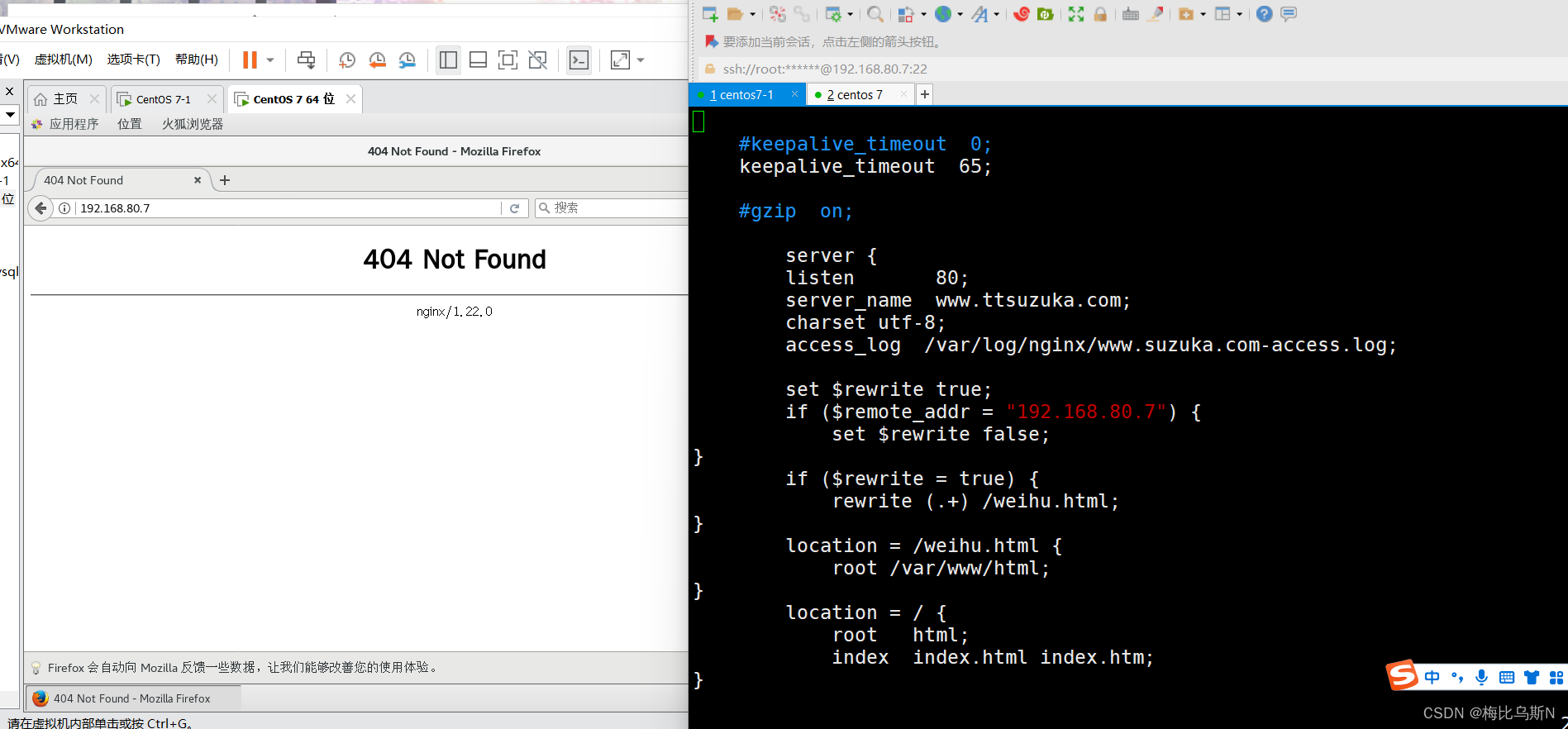 1、要求所有ip访问任何内容都显示一个固定的维护页面,只有公司ip:192.168.80.7能正常访问
