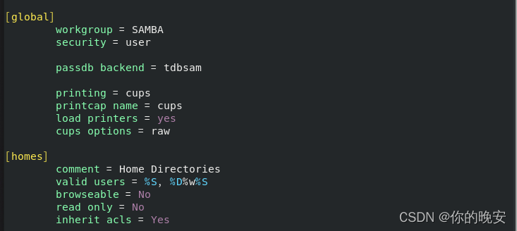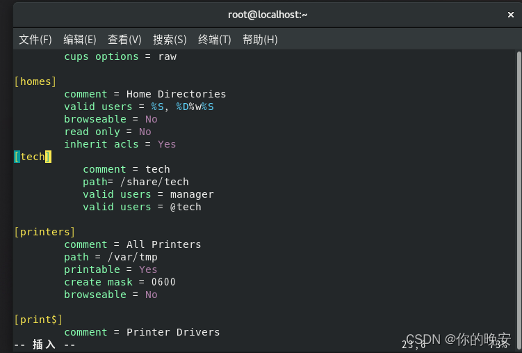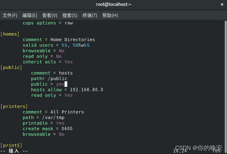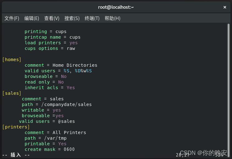 [root@localhost ~]# vim /etc/samba/smb.conf