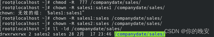 [root@localhost ~]# chown -R sales2:sales /companydate/sales/
