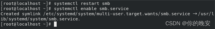 [root@localhost ~]# systemctl enable smb.service //启动Samba服务和设为开机自启