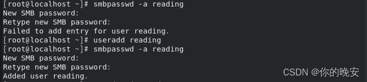 格式:smbpasswd -a 用户名
