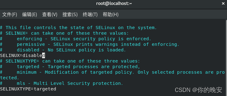 [root@localhost ~]# vim /etc/selinux/config