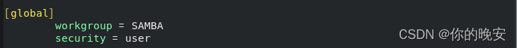 workgroup = SAMBA | #工作组名称 |