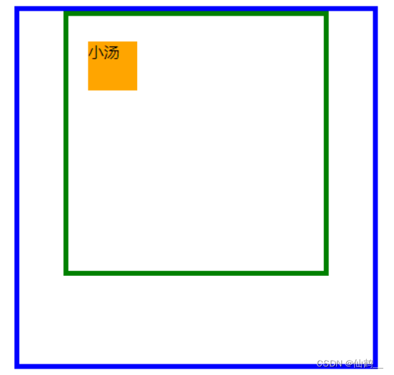 <p></p> → 绝对定位,将以div作为参考点。因为父亲定位了。