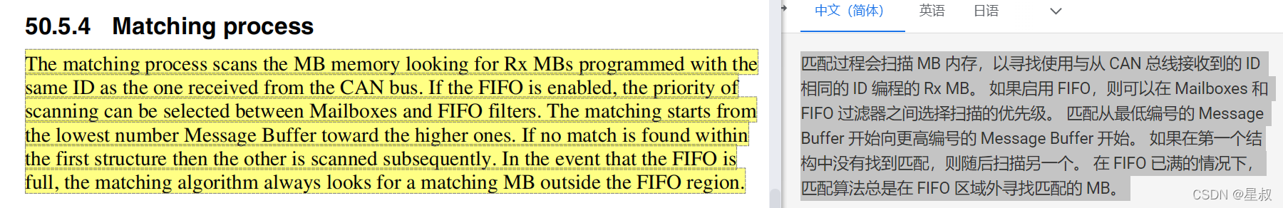 3.这段话第一个提到的是“匹配算法”,那么先介绍S32K,K3的MB的匹配算法。