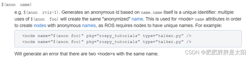 其实,我们如果认为给很多节点取名太麻烦,可以使用name=”$(anon node_name)”标签在节点node_name名称之后加一些随机数,使得该节点名称在整个catkin编译项目中唯一: