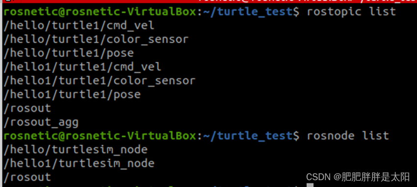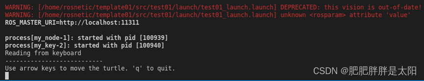 乌龟节点的话题从/my_node变为了/hello/my_node。我们在启动roslaunch发现我们的键盘已经控制不了小乌龟了,因为我们在给节点添加namespace的同时,节点的所有属性包括topic也都被置于namespace之下: