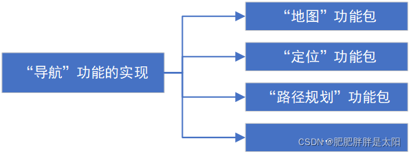对于ROS中的文件结构,我们重点关注src部分,我们经过了解ROS的文件结构知道:src目录下可以包含多个功能包,假设我们需要使用机器人导航模块,但是这个模块中包含着地图、定位、路径规划...等不同的功能包,它们的逻辑关系如下: