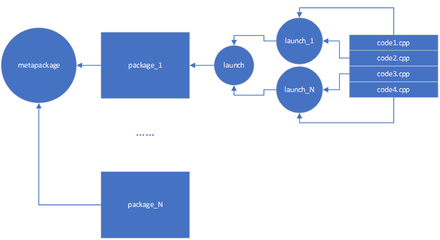 如果我要获取“导航功能”,我需要一个一个按照功能包之间的依赖关系启动功能包,这样有些太麻烦了。在Linux系统中为了更方便的组织工程项目(这里针对的是项目文件,即功能包),出现了“元功能包”的概念。这个是一个“虚包”,就是这个功能包的src目录下没有源文件,因此自身不会实现专属功能,其功能的实现完全依赖于其他的功能包,起到一个组织功能包的作用。