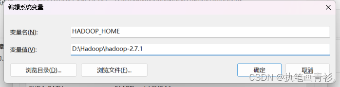 系统变量创建HADOOP_HOME:D:\Hadoop\hadoop-2.7.1