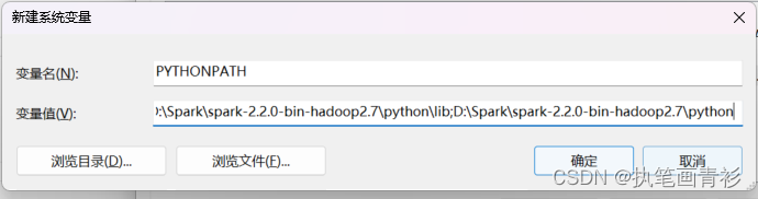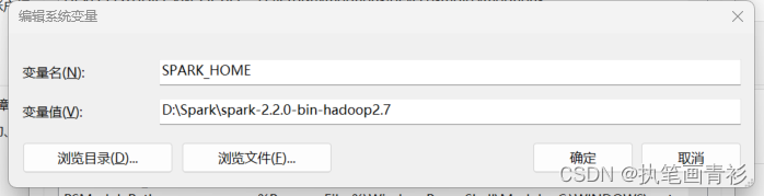 系统变量创建SPARK_HOME:D:\Spark\spark-2.2.0-bin-hadoop2.7